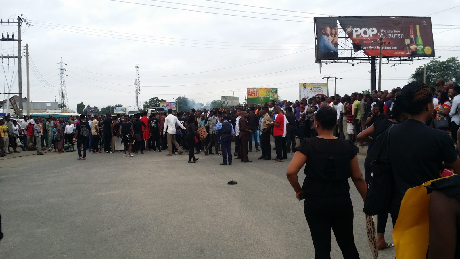 Angered students protest all around the university of Port Harcourt. .Blocking the East West express way and also shutting down lecture halls and libraries